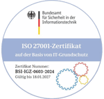 Durch unsere langjährige Zusammenarbeit mit der Bundesdruckerei verfügen wir über umfassende Kompetenzen im Bereich Datensicherheit und sind vom BSI zertifiziert nach BSI C5 und ISO 27001.